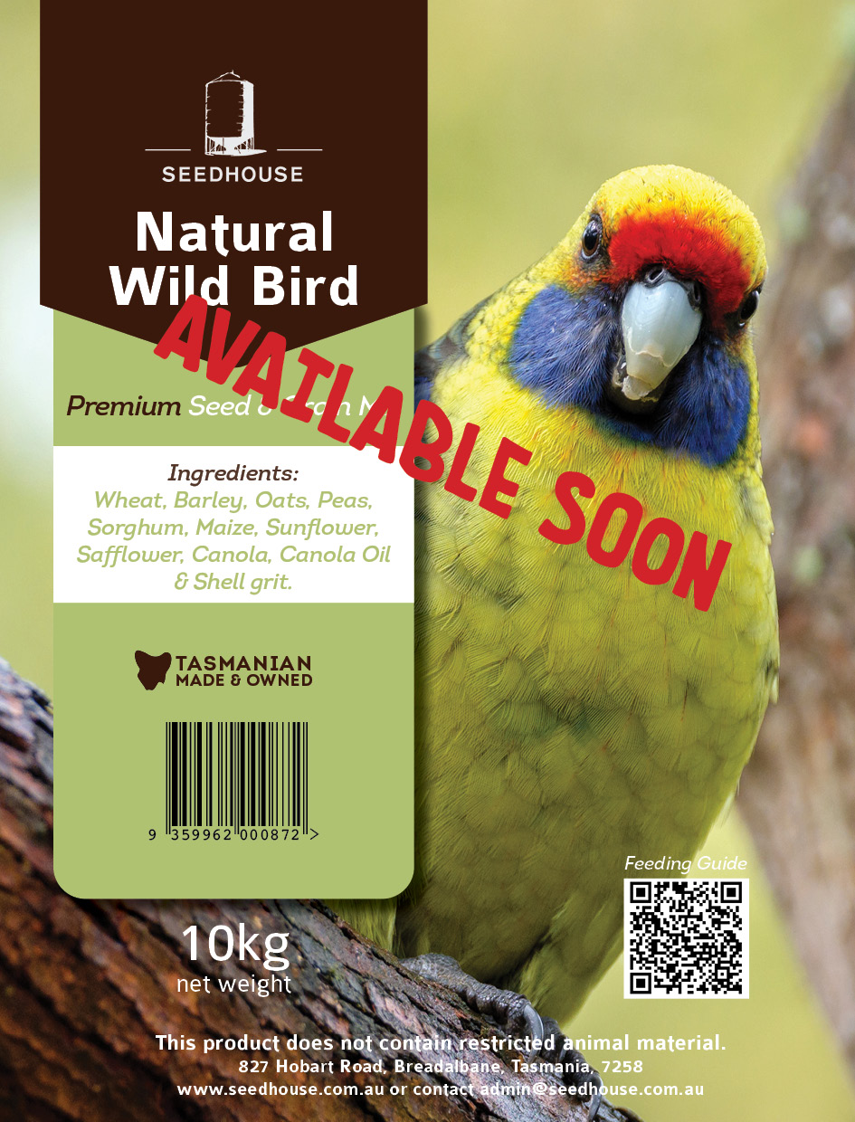 Seedhouse Natural Wild Bird Mix is a thoughtfully formulated blend of whole grains, seeds and shell grit, designed to complement the natural diet of Tasmanian wild birds without encouraging dependence.